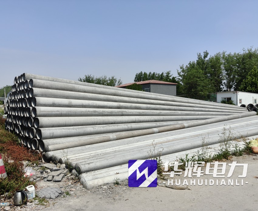 8米商南水泥电线杆通常采用钢筋混凝土离心成型工艺,杆体呈锥形结构,梢径150mm-190mm,根径230mm-270mm,壁厚40mm-50mm。根据标准GB/T4623-2014,产品混凝土强度等级不低于C40,主筋采用HRB400级钢筋,配筋量根据抗裂弯矩要求设计,标准抗裂弯矩可达12-18kN·m,破坏弯矩不小于24kN·m。杆体重量约0.5-0.8吨,运输安装便捷,适合人工或小型机械施工。
